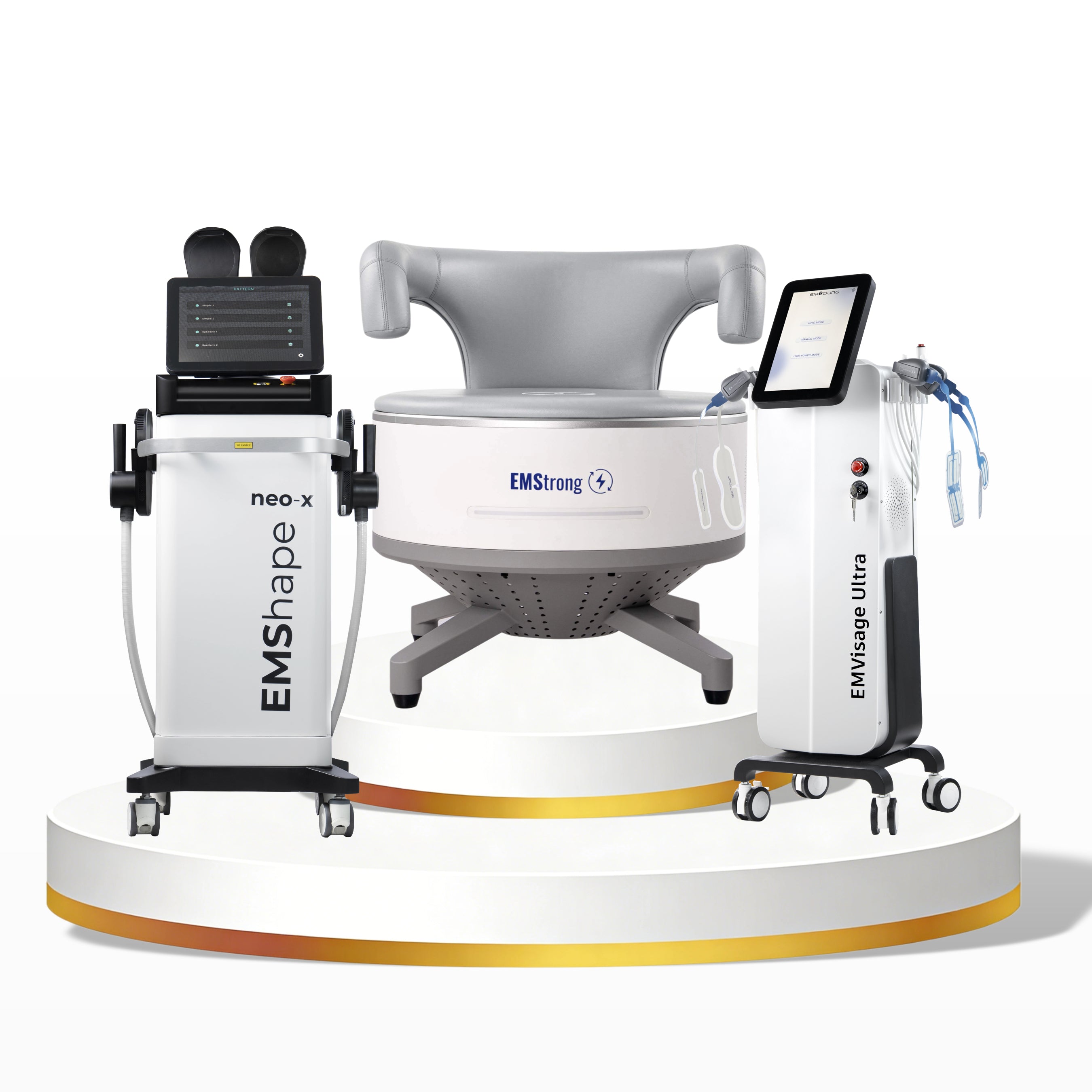 1. EMSHAPE® NEO-X uses the latest high intensity concentrated magnetic muscle training (HICMMT) technology plus radio frequency (RF) to deliver efficient and effective muscle building and fat burning results.  Also tightens skin, reduces cellulite and boosts metabolism.