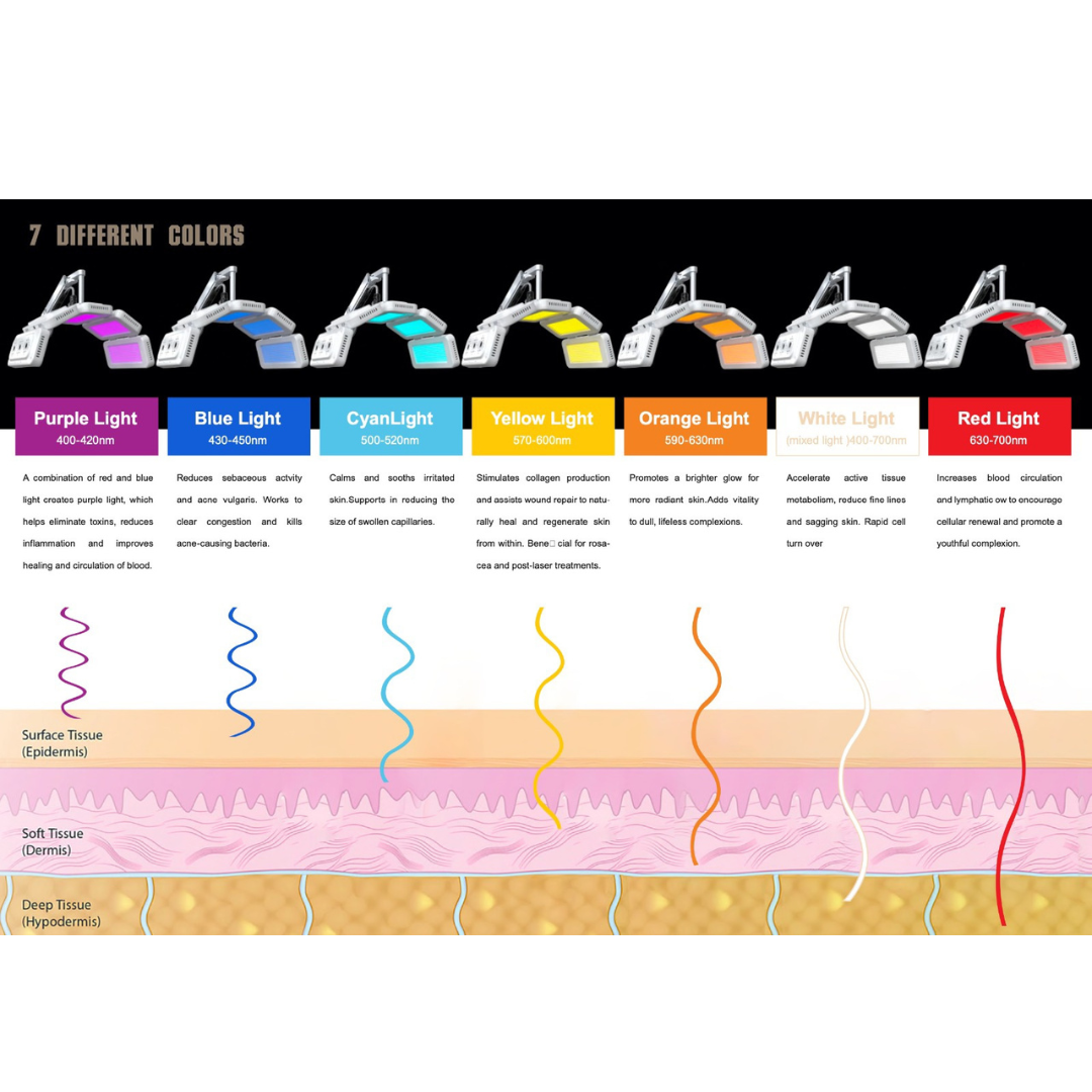Utilisant sept longueurs d'onde ciblées, il pénètre profondément dans la peau pour atteindre la couche de graisse sous‑cutanée, transformant la lumière en énergie cellulaire. Cela stimule la régénération cellulaire et la circulation sanguine tout en favorisant la production de collagène par les fibroblastes. Le résultat est une réduction puissante des signes du vieillissement tels que les ridules, la pigmentation irrégulière et la texture rugueuse. Soutenu par de nombreuses études, cet appareil offre des améliorations prouvées de la texture de la peau et de la vitalité globale.