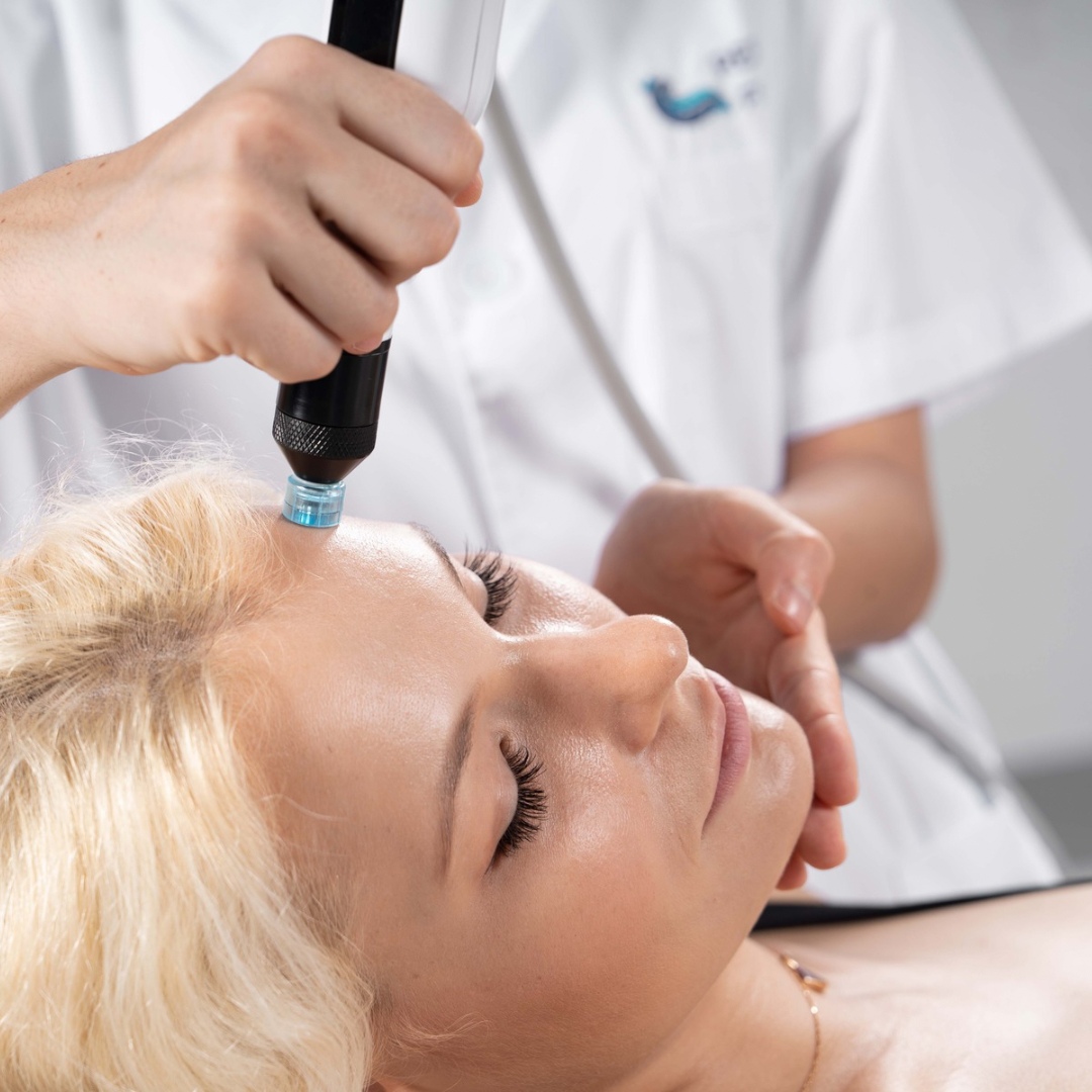 Enjoy similarly revitalizing results as with the straight spray head. This treatment works by triggering its natural self-repair mechanisms and enhancing the production of collagen, specifically targeting wrinkles and scars. Wait until the skin has been fully rejuvenated before doing the next treatment.
