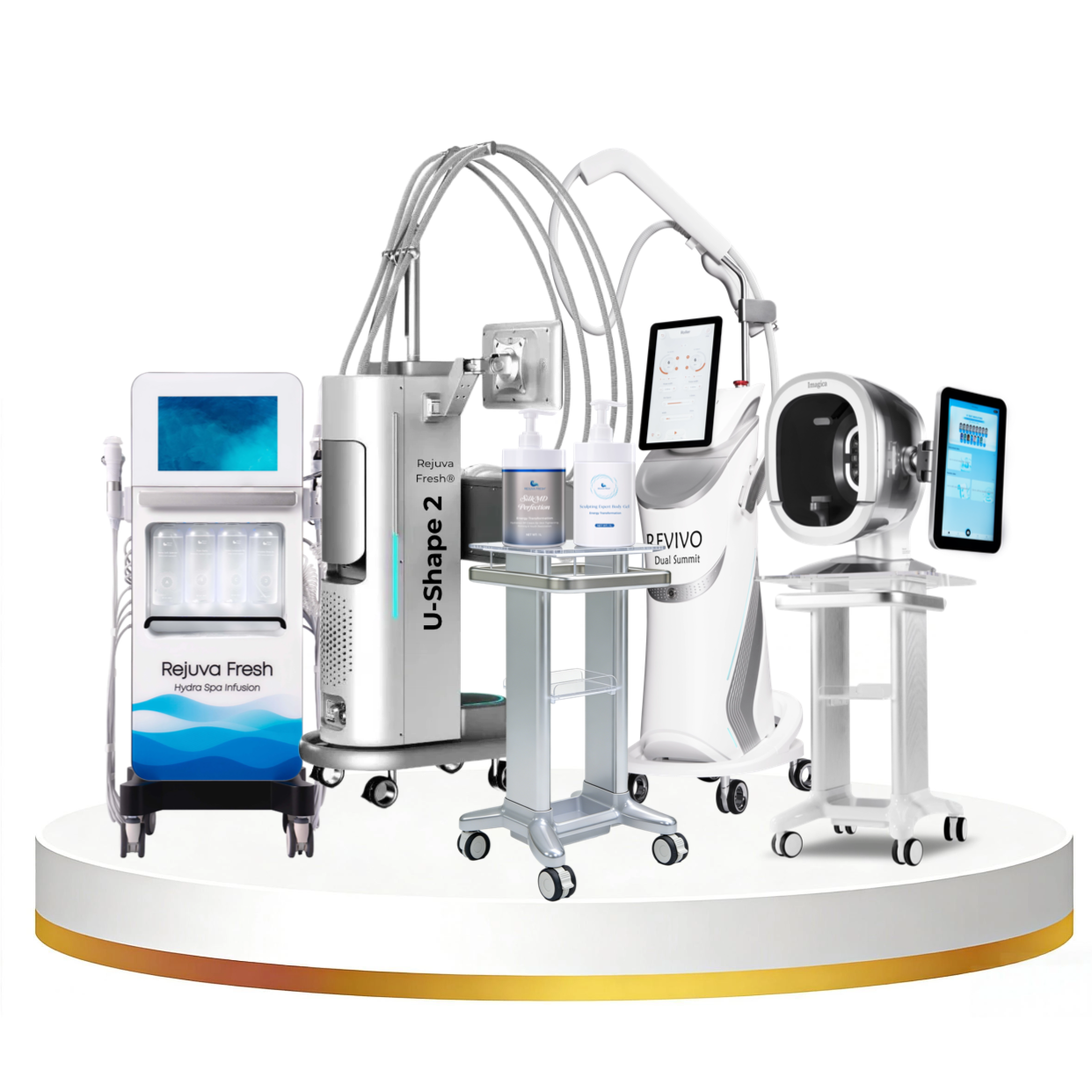 This comprehensive package offers a wide range of treatments, including AI-powered skin analysis, hydrodermabrasion, fractional resurfacing, dual-wavelength laser rejuvenation, advanced body contouring, fat reduction, tightening, scar revision, stretch mark reduction, pore refinement, and various anti-aging procedures.